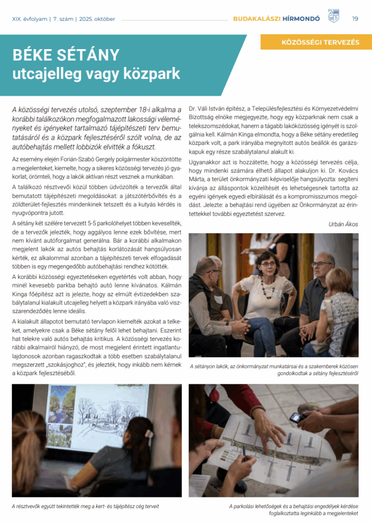 Ez egy érdekes és szubjektív írás, minden ami történt velem, s ahogy én érzem jelenleg ennek kapcsán. A közösségi tervezésnél történt ami történt, az önkormányzat hozott döntéseket, azok meg sikerültek ahogy sikerültek.